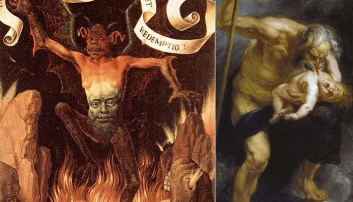 Жутковатое полотно Питера Пауля Рубенса передает мифологический сюжет о боге Сатурне (в греческой мифологии - Кронос), которому напророчили, что один из его детей уничтожит отца. Именно поэтому Сатурн пожирал каждого из своих отпрысков.